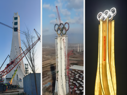 2021年與中建一局三公司合作承接了備受矚目的北京冬奧會五環(huán)鋼結(jié)構(gòu)項(xiàng)目,此項(xiàng)目為博泰的發(fā)展填上了濃墨重彩的一筆,本工程鋼結(jié)構(gòu)分為塔筒周圍飄帶、五環(huán)支座桁架和五環(huán)三部分。主要 由異型管桁結(jié)構(gòu),框架與桁架的組合結(jié)構(gòu)構(gòu)成,奧運(yùn)五環(huán)外徑12米,內(nèi)徑10米,厚度3米。北京博泰堅(jiān)持“安全一、預(yù)防為主、綜合治理”的方針,為冬奧會的成功舉辦貢獻(xiàn)力量。