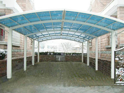 陽(yáng)光板車棚:棚頂材料是陽(yáng)光板(簡(jiǎn)稱中空板),而陽(yáng)光板具有透光性、抗撞擊、防紫外線、重量輕、阻燃、可彎曲性、隔音性、節(jié)能性、溫度適應(yīng)性、耐候性、防結(jié)露、簡(jiǎn)易方便,不像傳統(tǒng)材料那樣笨重,在近幾年廣泛已經(jīng)得到越來(lái)越廣泛的應(yīng)用。