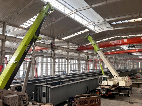 鋼柱吊裝后,要先對鋼柱的軸線和標(biāo)高進(jìn)行復(fù)測,糾偏后暫時用纜風(fēng)繩穩(wěn)住鋼柱,再安裝柱間支撐、屋面梁和梁間系桿,這是所謂的粗安裝。屋面梁安裝前,應(yīng)先在地面拼裝,經(jīng)測量合格后再吊裝。梁到位后,用高強(qiáng)螺栓連接,其他各個部件用相應(yīng)螺栓固定,但各類螺栓不宜鎖緊。各部件固定后,再次對鋼柱軸線和標(biāo)高進(jìn)行復(fù)測和糾偏,即微調(diào)。鋼柱的軸線應(yīng)從兩個方向復(fù)測,復(fù)測合格后,再依次擰緊各個部位的螺栓。對高強(qiáng)螺栓要進(jìn)行初擰,在擰緊過程中,應(yīng)對鋼柱的軸線進(jìn)行動態(tài)跟蹤,如軸線變化超出允許值,應(yīng)立即加以調(diào)整。整個擰緊過程應(yīng)從梁柱接點(diǎn),再到支撐、系桿接點(diǎn),對同一部件的兩端采用對稱的方法同時進(jìn)行,以減少單側(cè)累積誤差。這樣才能確保鋼柱安裝正確。如果在此過程中,發(fā)現(xiàn)安裝件和被安裝件不配合,則不能調(diào)整被安裝件,而是調(diào)整安裝件或采取其他彌補(bǔ)措施。例如:鋼梁和鋼柱不配合,則不能調(diào)整鋼柱,只能調(diào)整鋼梁。在整個排架安裝過程中,鋼柱安裝正確是其他安裝正確的必要條件。